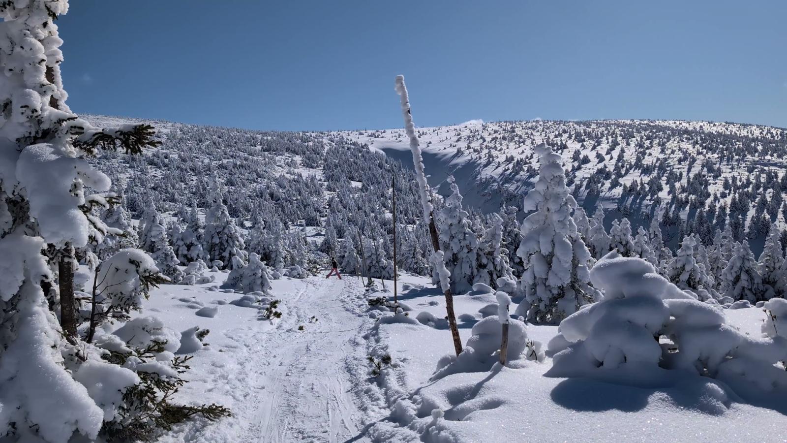 2025: Další den v Krkonoších, na který se nezapomíná. Tentokrát s dcerkou a také velký okruh. Skoro jasno, -10 °C a absolutní bezvětří. Stříbrné návrší se vám odmění ikonickými pohledy, které vyrazí dech a dlouho zůstanou zaryté v paměti. Celodenní výlet na běžkách – 27,9 km, dojezd na Moravskou za tmy s čelovkami.